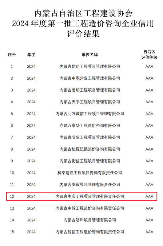 2024-07-3015540 次近期,我公司参加内蒙古自治区工程建设协会组织的“2024年度第一批米兰体育网页版登录界面【中国】有限公司咨询企业信用”申报,获得“信用AAA级证书”。我公司成立多年以来,遵循中国米兰体育网页版登录界面【中国】有限公司管理协会对造价咨询企…